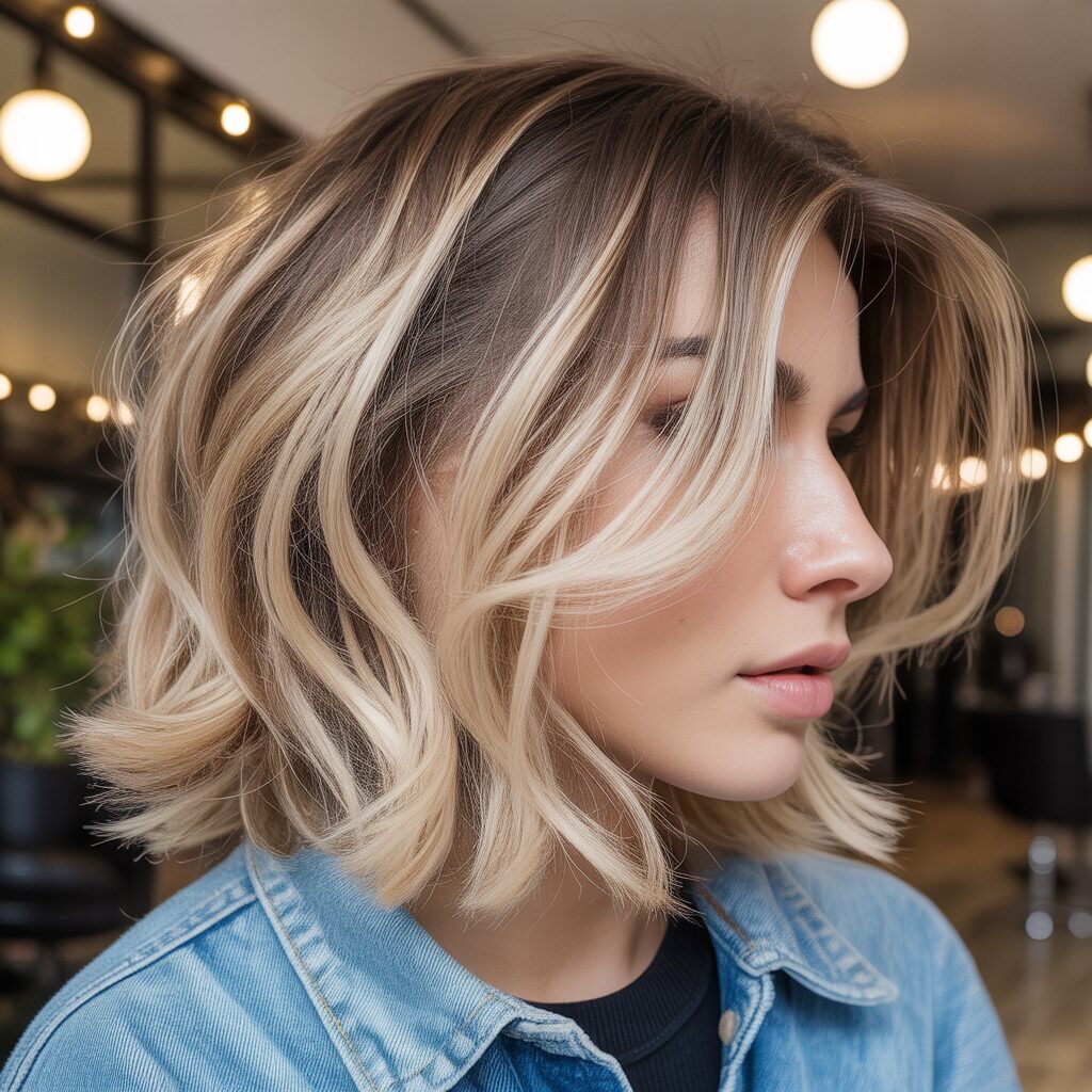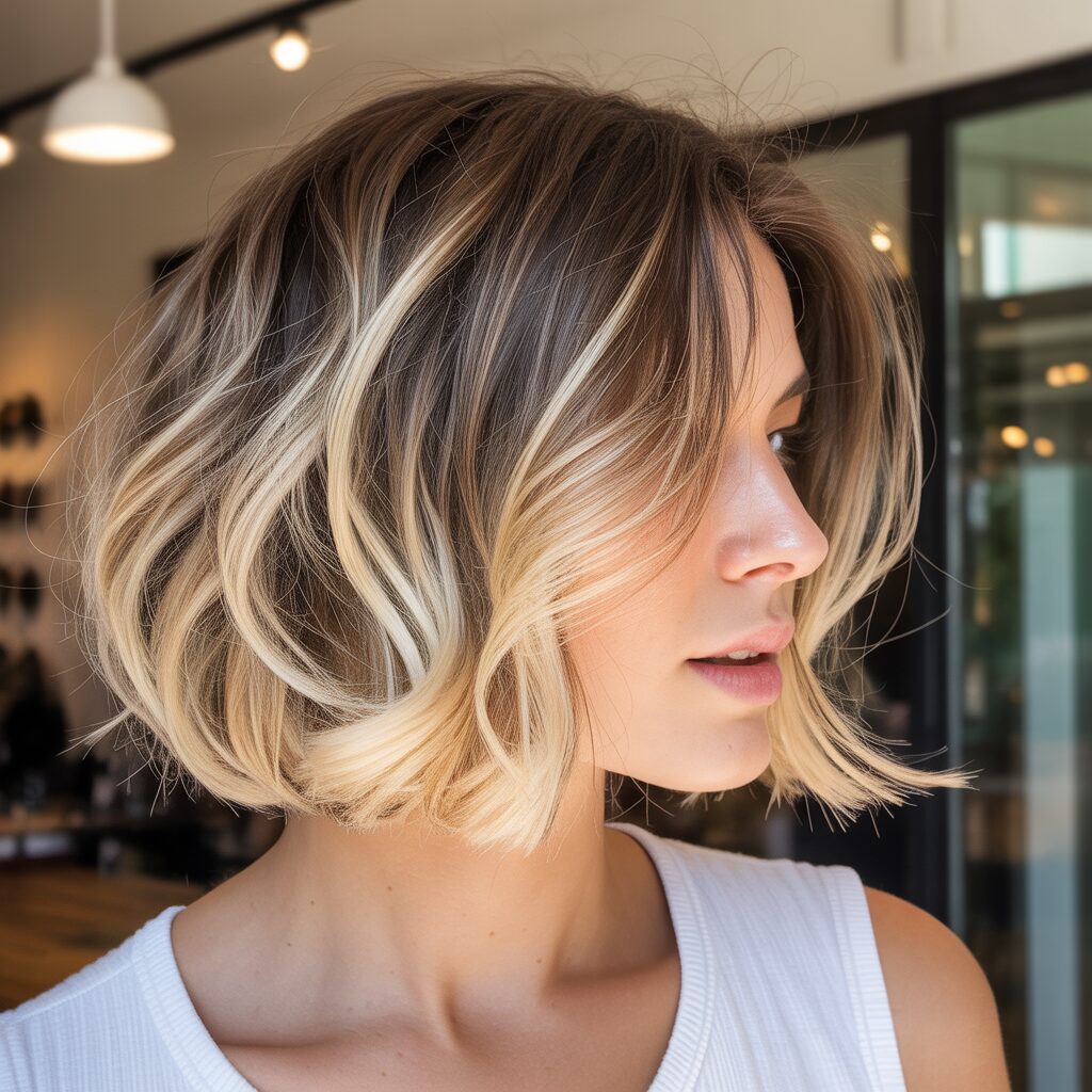 A blonde balayage instantly adds texture and interest to short hair. Highlights break up solid color, giving the haircut more detail. Bobs and lobs appear fuller and more modern. Even minimal styling feels intentional. Consequently, short haircuts stand out in a crowd.