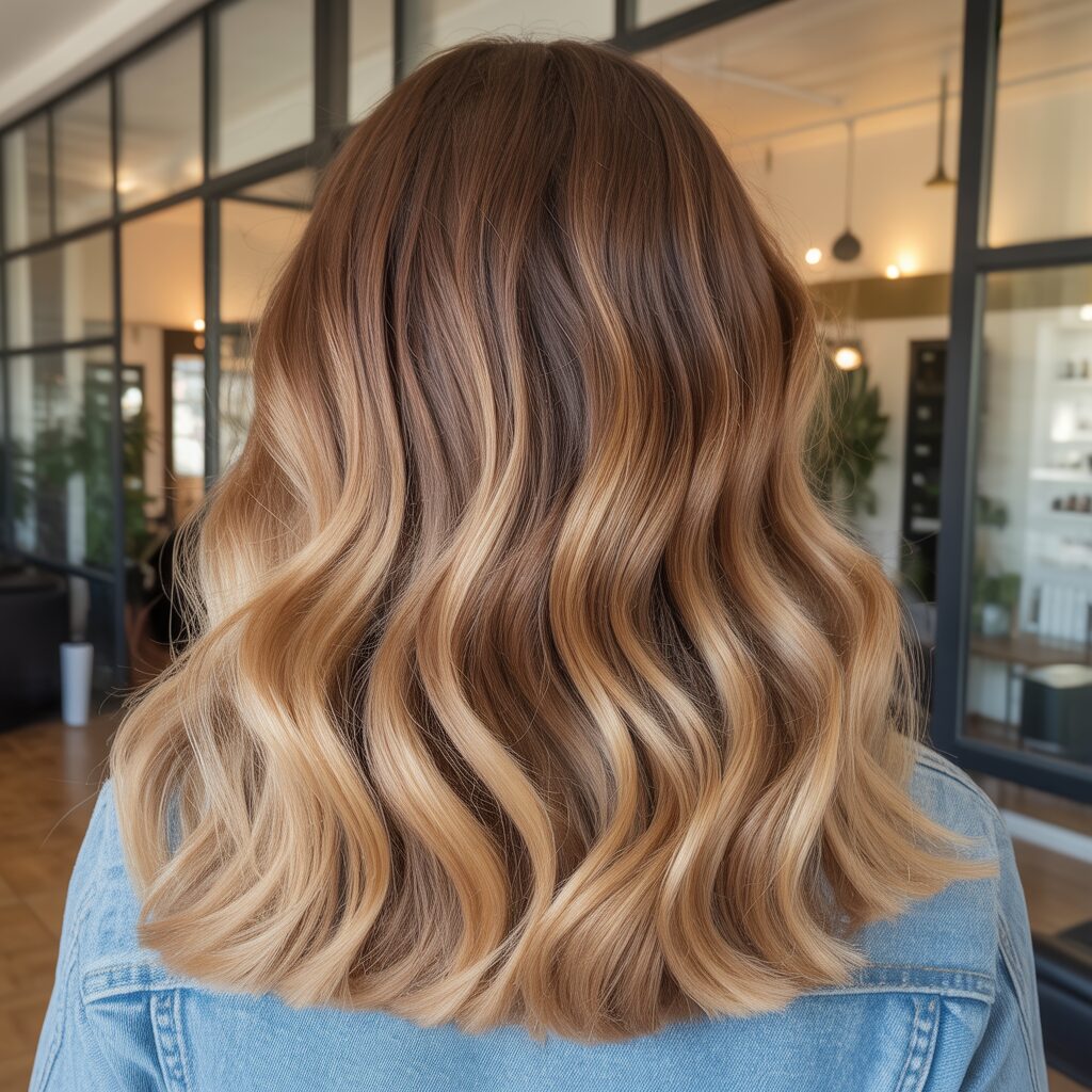 It features subtle highlights that look naturally sun-kissed. It blends into your base without creating harsh lines or strong contrast, so it enhances your hair without overpowering it. This style is perfect if you like soft, wearable color that looks great every day. Long-term wear is made possible by the low maintenance grow-out.