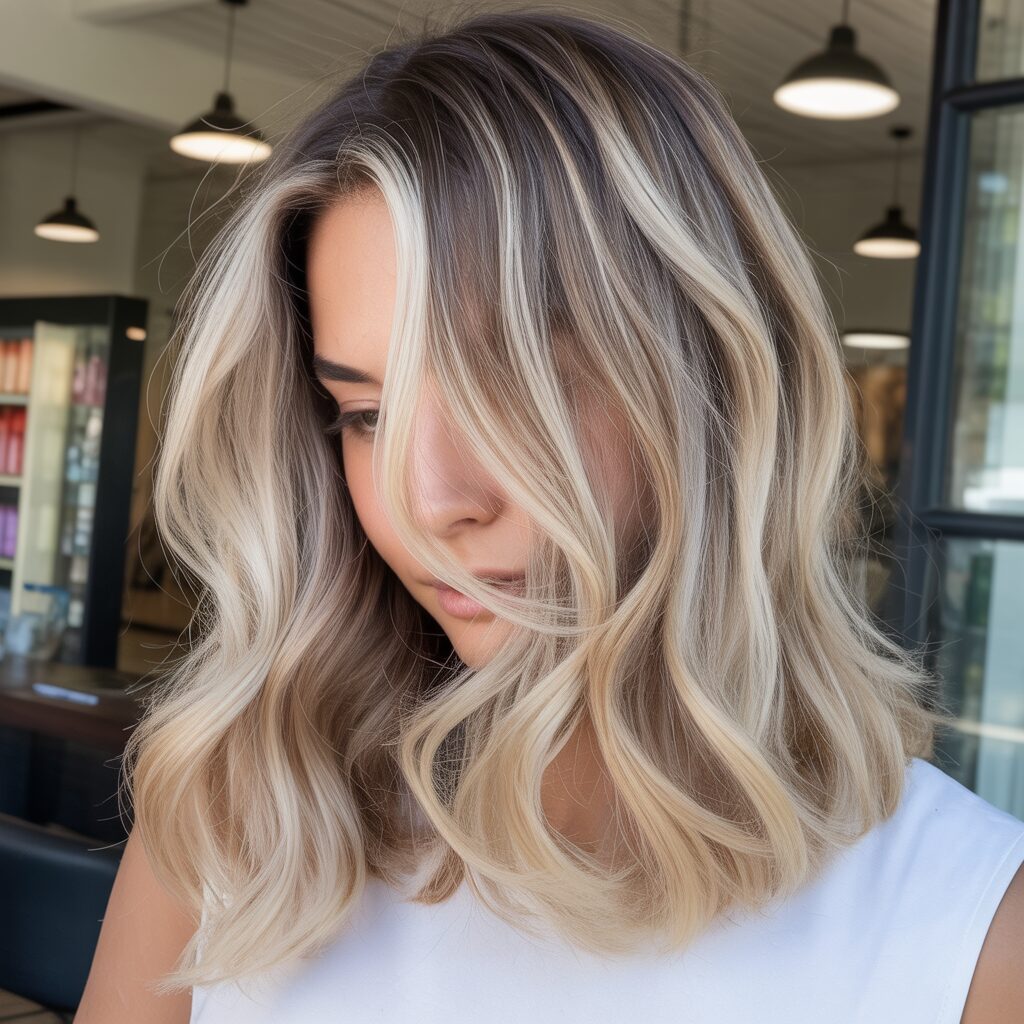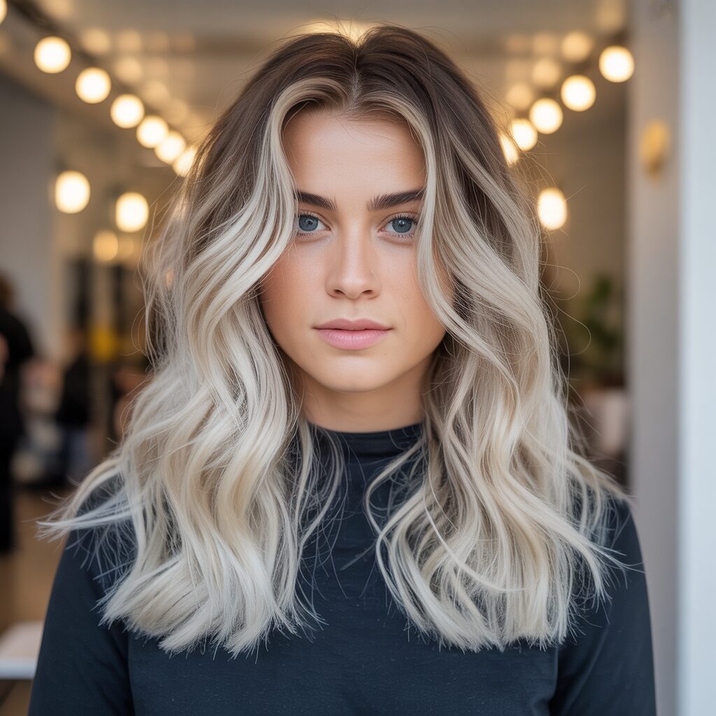 The gradual transition of platinum blonde balayage keeps it wearable and luxurious instead of full bleaching. It’s perfect if you want noticeable change without harsh roots. It’s perfect for people who want a high-fashion look. The look stays bold yet balanced.