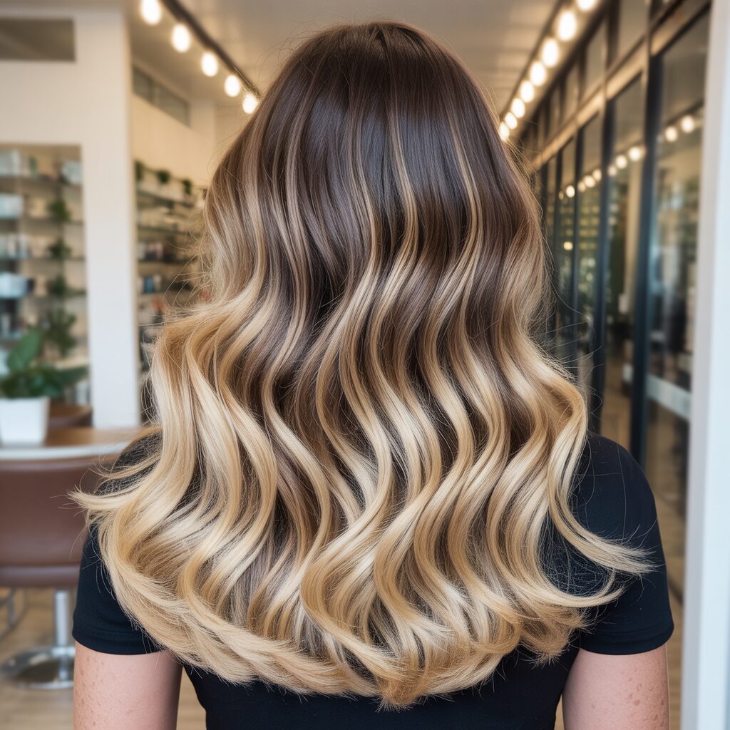 You’ll get a relaxed and beach-inspired look with balayage if you prefer effortless, lived-in hair. The color captures light naturally along each wave. It’s perfect for those who love effortless, lived-in hair that looks relaxed and beach-inspired.