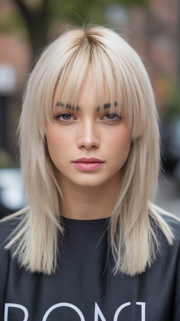 4. Straight Blonde Wolf Cut With Choppy Bangs