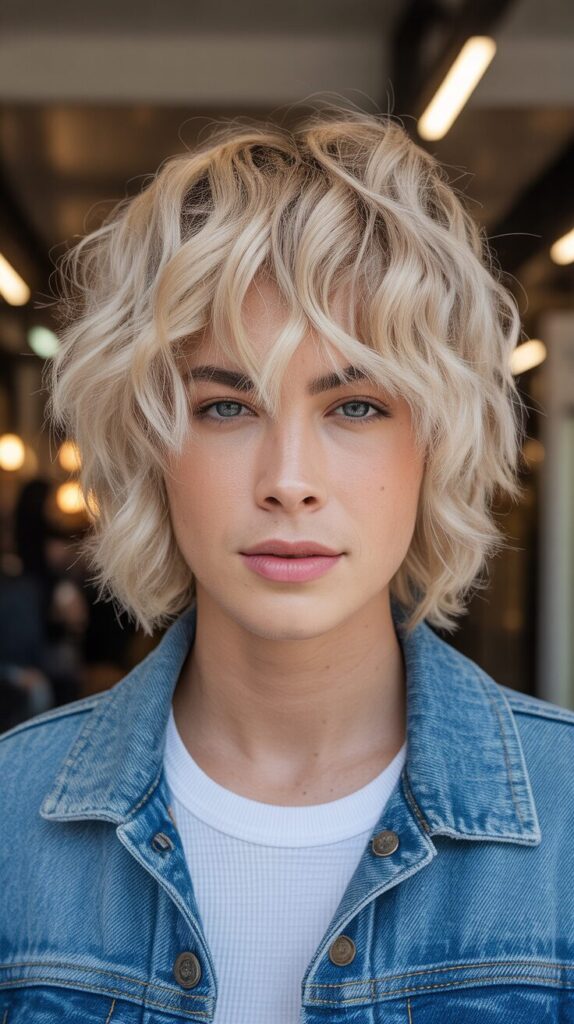 6. Tousled Wavy Medium Blonde Wolf Cut With Messy Bangs