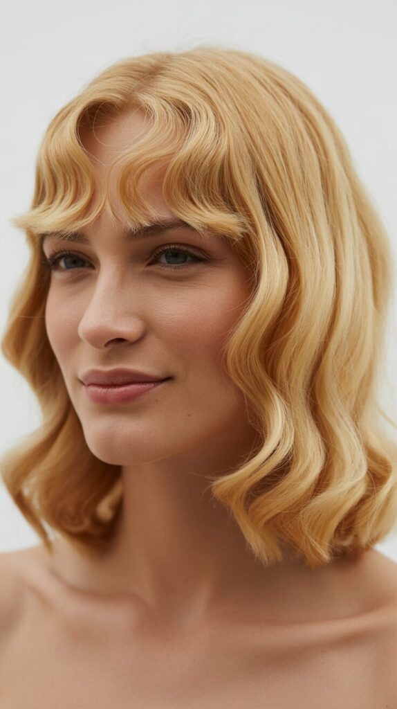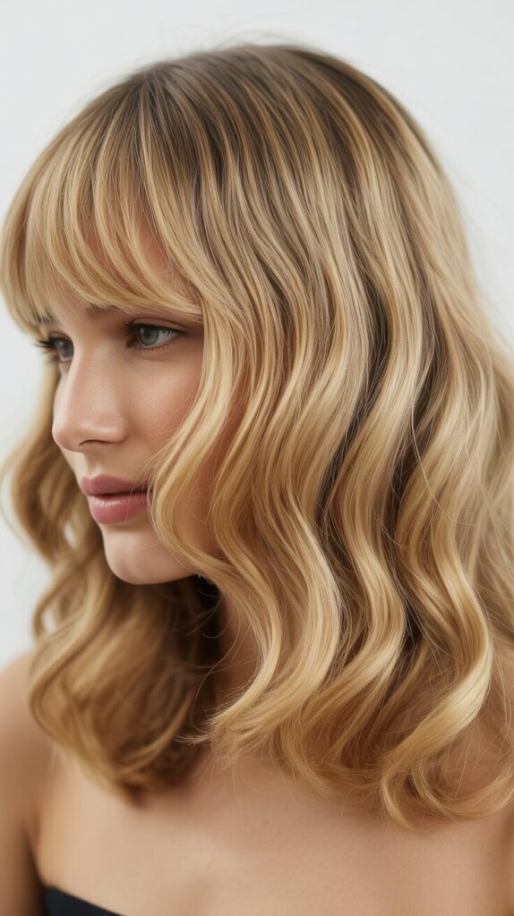 5. Blonde Wavy Wolf Cut With Bottleneck Bangs