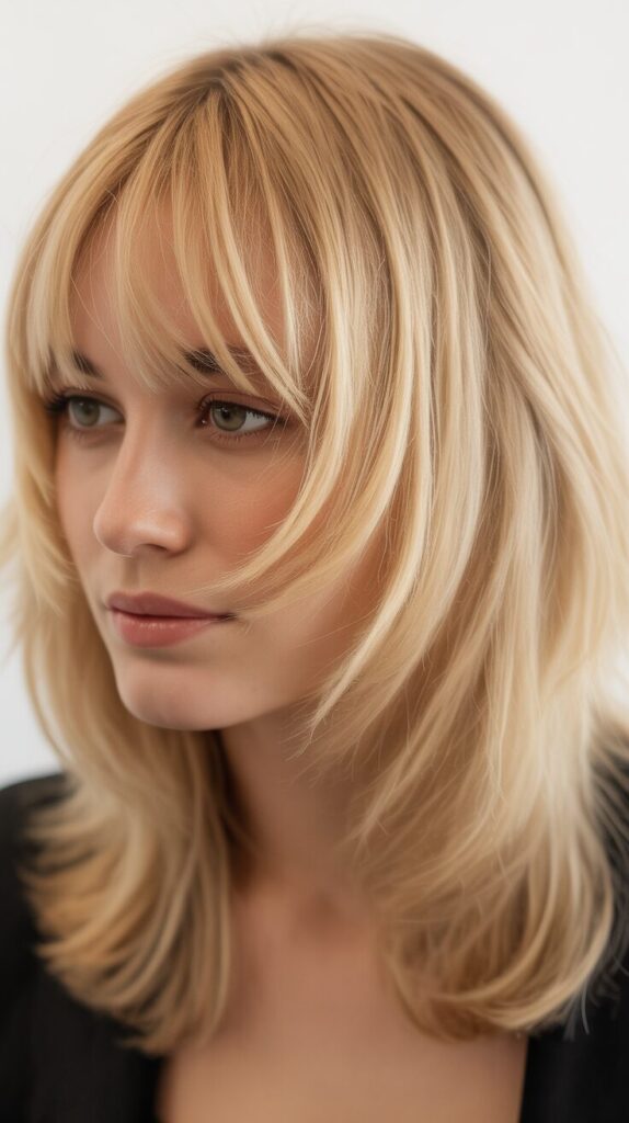 1. Medium Blonde Wolf Cuts With Bangs Extended Bangs and Yellow Highlights