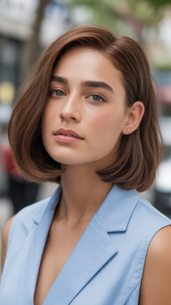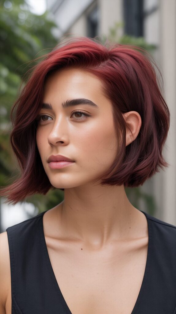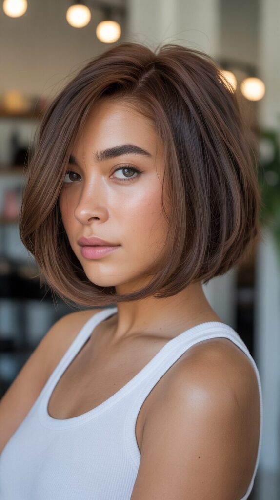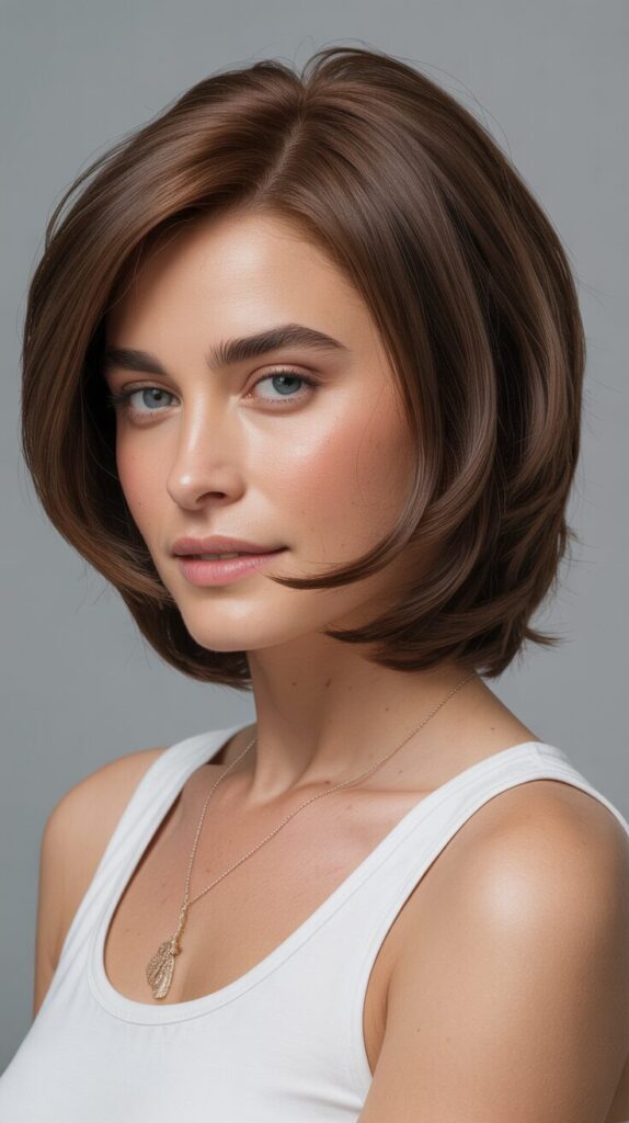 With the side-parted bob, volume is naturally shifted. This style prevents thick hair from appearing too wide, and it adds softness to facial features. Thick hair appears more balanced with this cut. It is easy to style and maintain, making it perfect for professional environments.