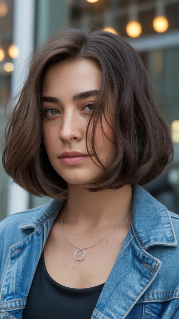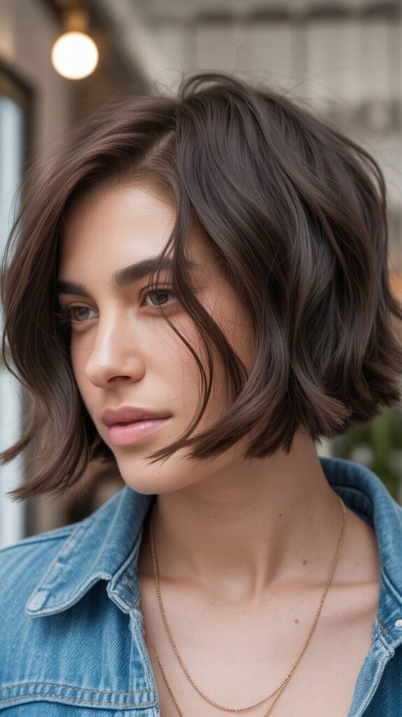 Asymmetrical bob cuts reduce visual bulk, while uneven lengths break density naturally. This style feels trendy and modern, as well as aesthetically pleasing. Hair that is thick supports the shape well. It adds personality to the haircut. The styling looks intentional and stylish.