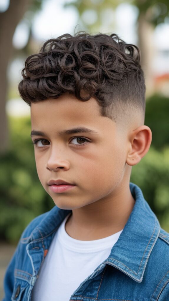 It’s a great choice for boys with naturally curly hair who want to look cool and manageable. Fun, fresh, and full of character, it only requires minimal styling.