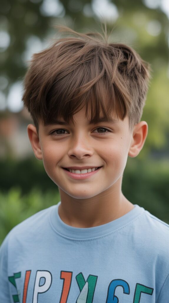 It’s perfect for boys who don’t want something too formal. Comfort, coolness, and charm combine in this great everyday haircut.
