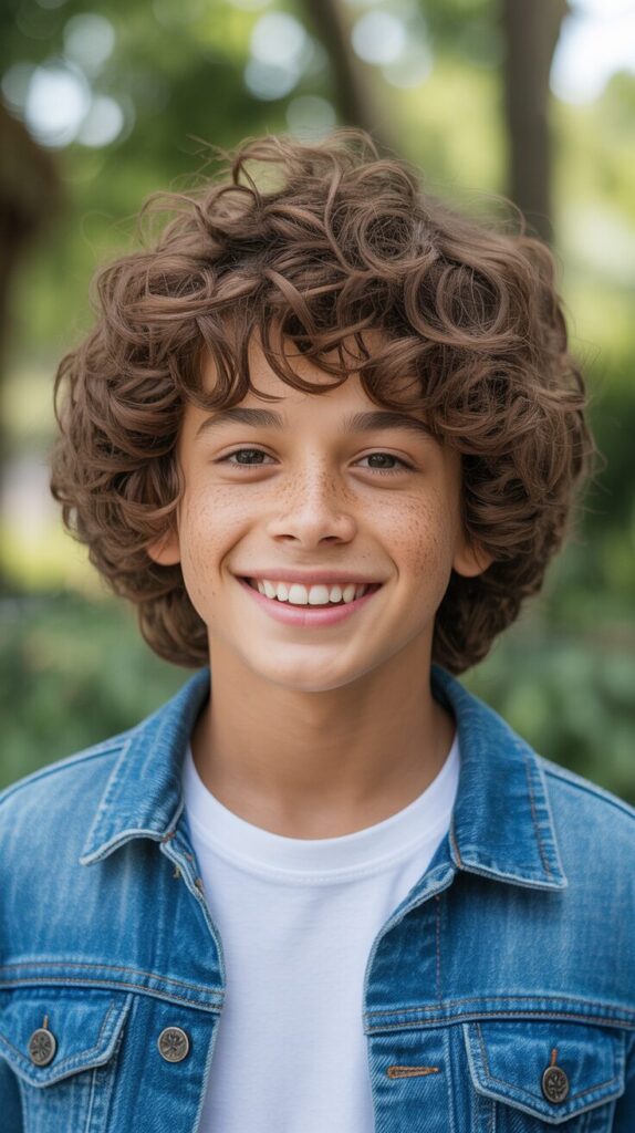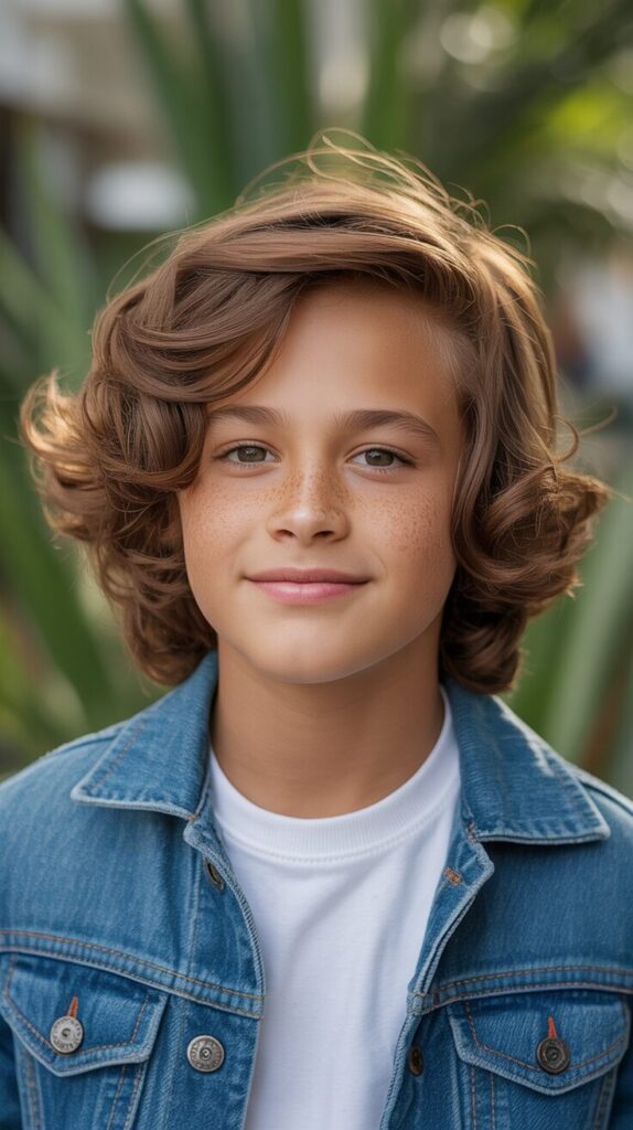 It’s perfect for boys who enjoy their hair feeling light and fun without too much styling. Curly-haired boys will feel confident and carefree with this haircut, which brings out their personality and texture.