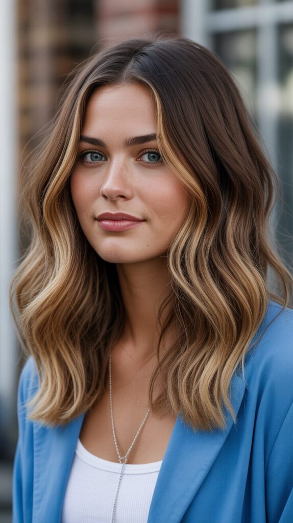 The Long Razor Cut Wavy California Brunette With Money Pieces