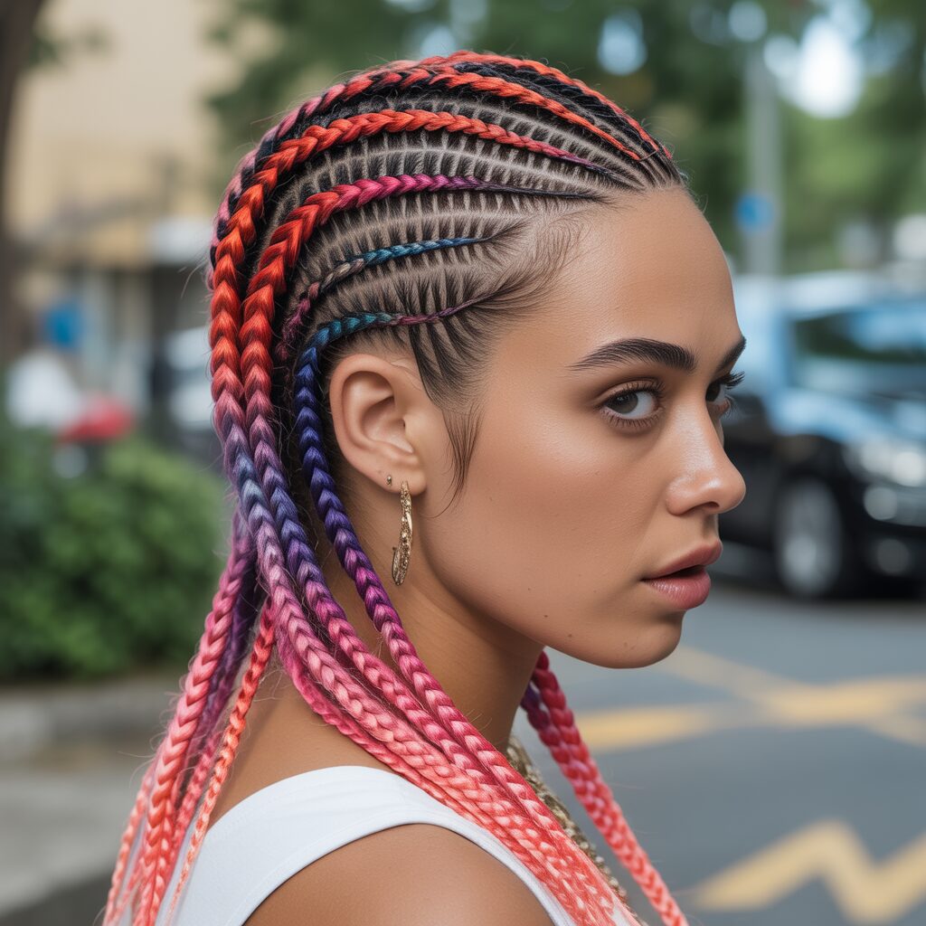 Colored cornrows add instant personality to your look. You can choose bold or subtle shades. Color adds depth and creativity to the style. The style stands out beautifully. It is a great way to show off your style.