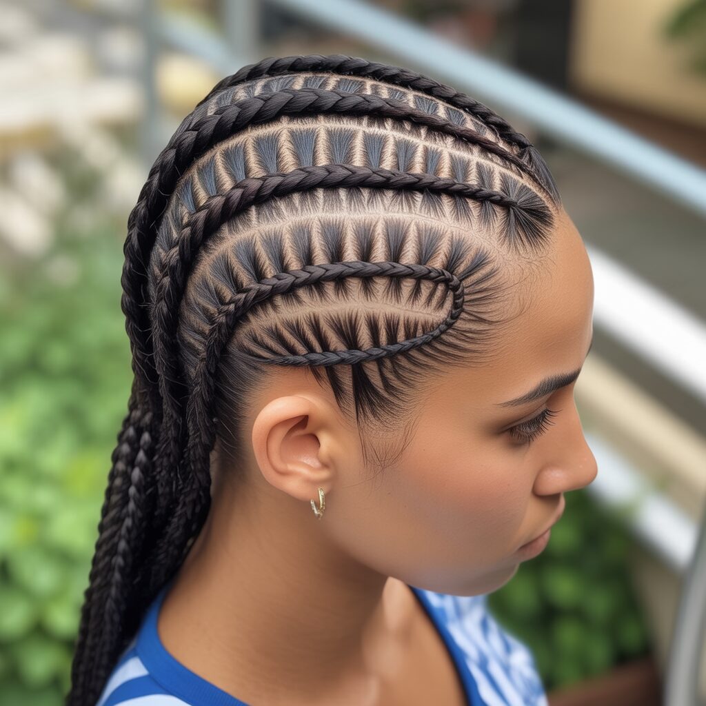 3. Cornrows with Curved Patterns