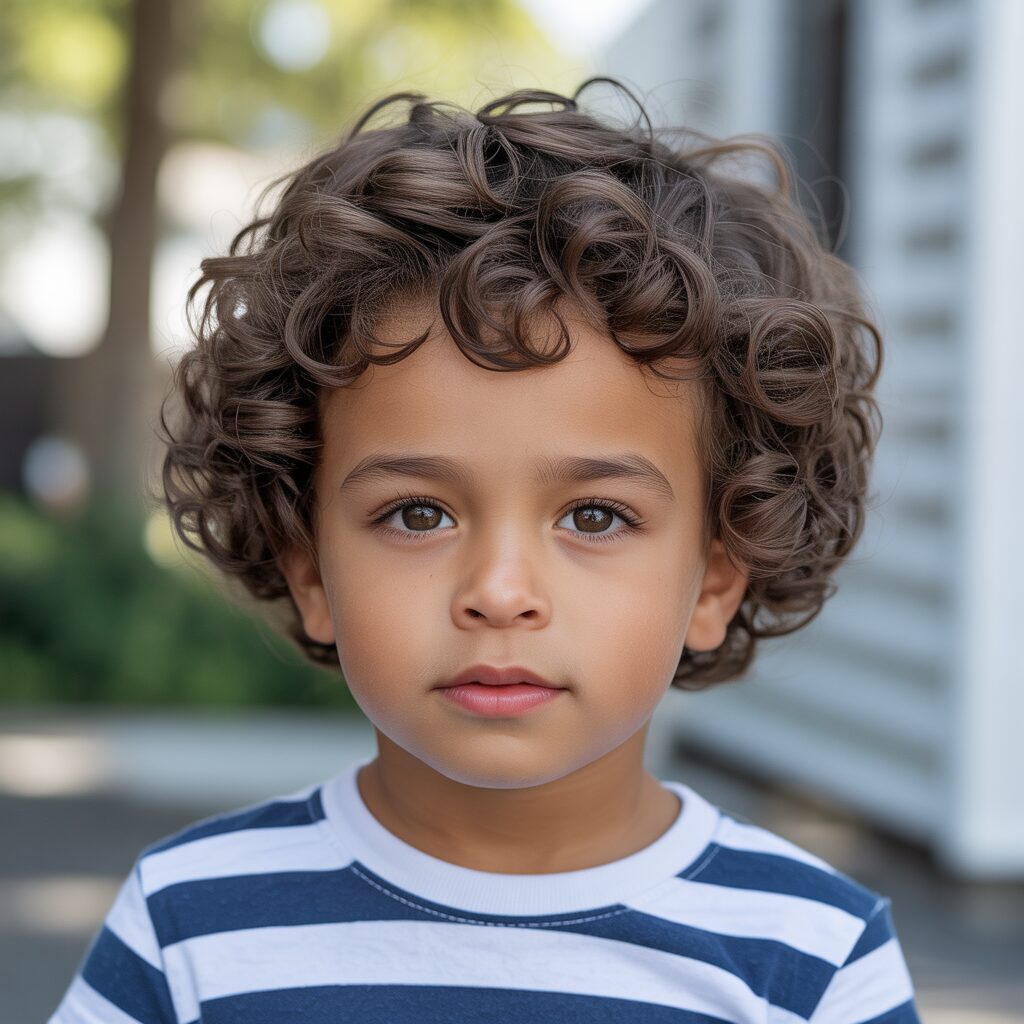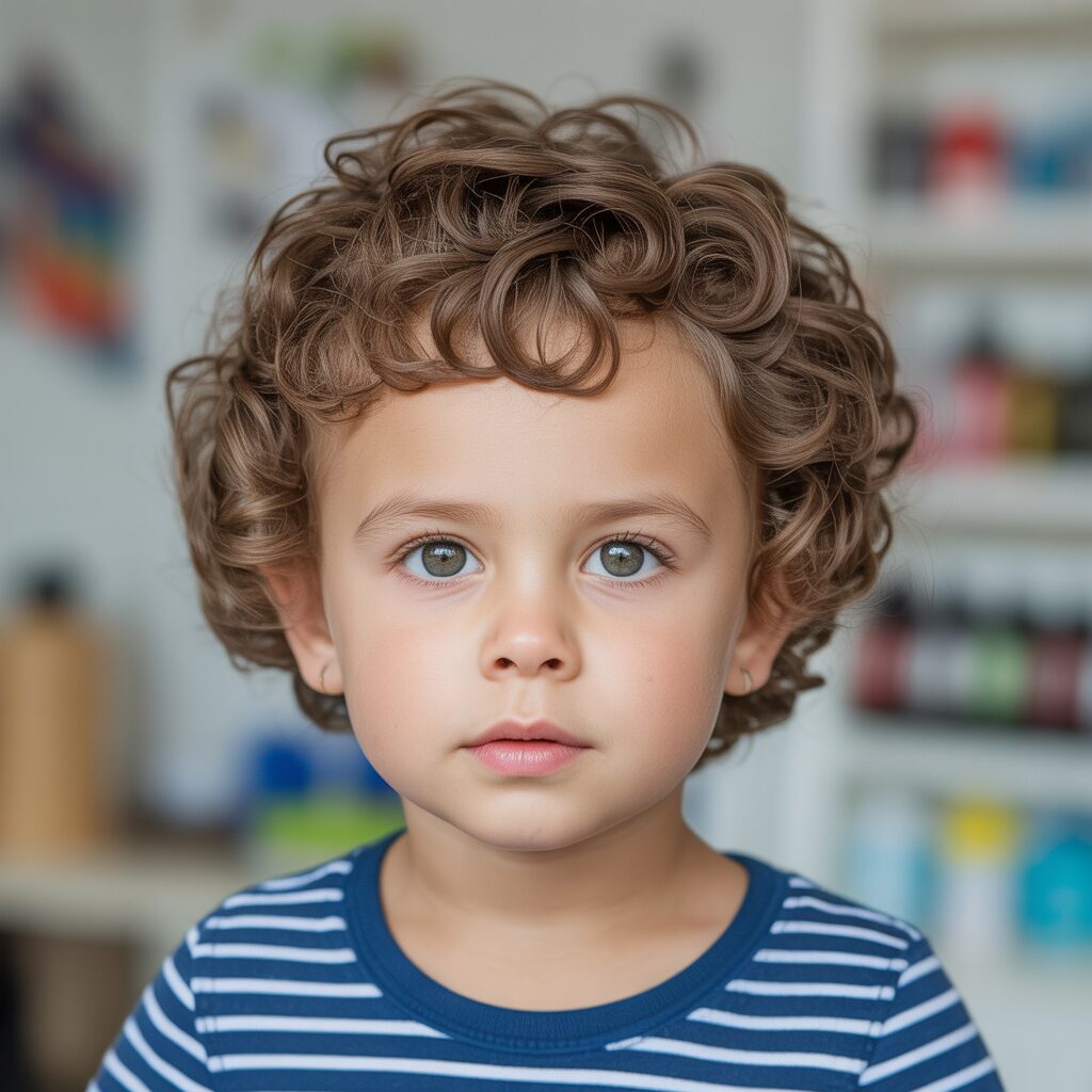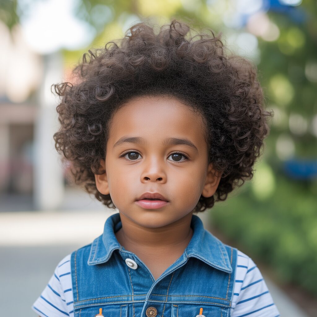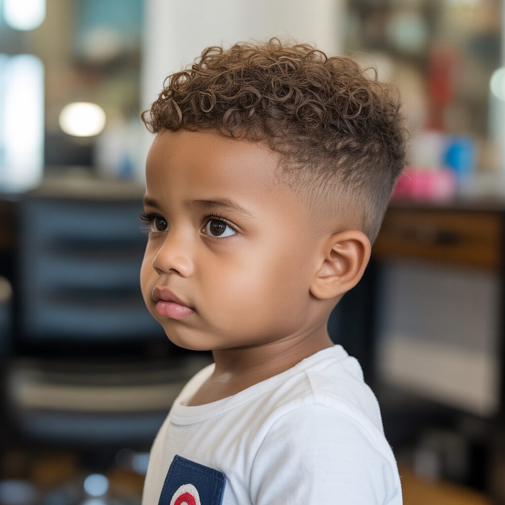 As a result of the combination of a clean fade with natural curls on top, this haircut gives a playful look that’s still stylish. The sides are kept tidy with the fade, and the curls add personality. It is an extremely popular haircut among toddlers today.