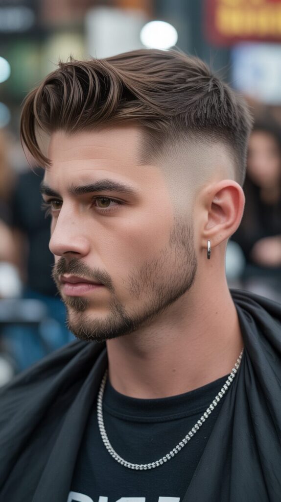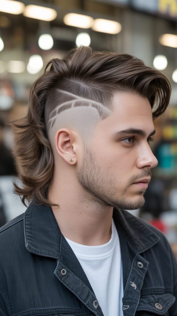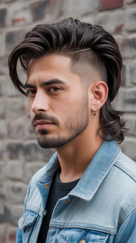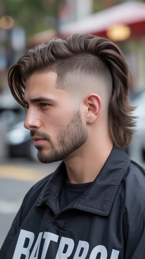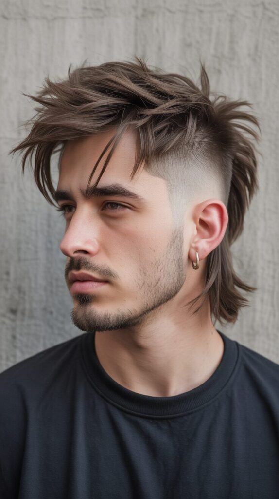 The Mohawk-inspired faded mullet cut is a bold, expressive choice that offers a unique combination of rebellious spirit and modern sophistication that is unlike any other.