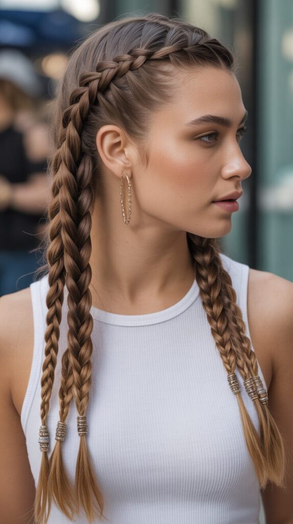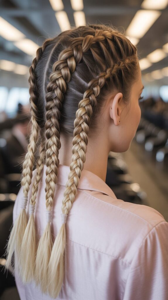 There is a perfect balance between the weight and comfort of medium-length freehand braids. They are light enough to accommodate long flights. The length prevents tangling and pulling. This hairstyle requires little maintenance during travel, making it a great choice for the airport.