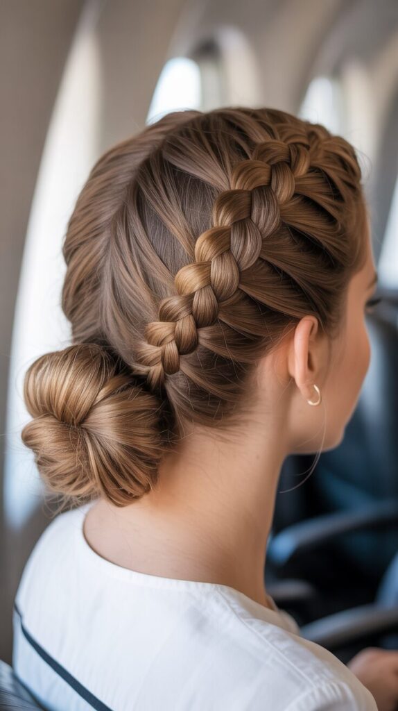 In a freehand braid styled into a bun, you can add even more neatness for traveling. The bun keeps hair fully tucked away, which reduces frizz and exposure to the elements during flights. It also gives you a polished and elegant look. This is perfect for business or long-distance travel.