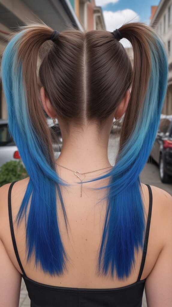 The black and blue Gemini hair looks seem to never stop! With this two-tailed Gemini haircut, you get bad boy blue and syrup brown shades contrasting against one another. The contrast between these two shades, as well as the two-tail shape, makes this Gemini hairstyle very appealing and eye-catching.