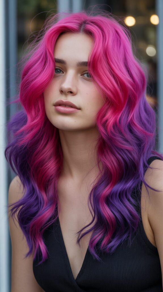 Medium Wavy Hot Pink and Neon Purple Gemini Hair