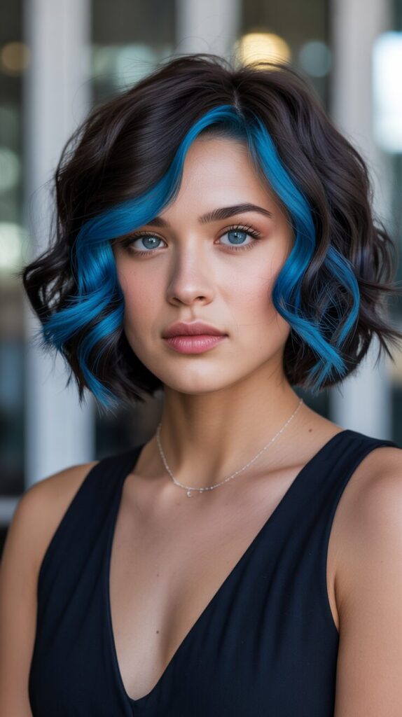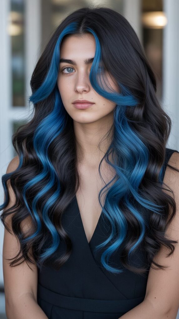 Having black hair with blue highlights is incredibly popular right now. If you have naturally black wavy hair, you may want to give it a bolder twist by pairing it with bright Pacific blue highlights. A vibrant shade of blue looks much more radiant and classy when paired with black hair.