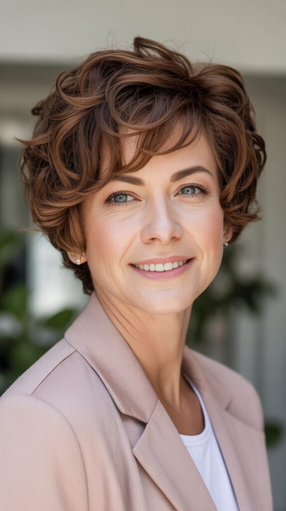 12. Curly Pixie with Side-Swept Layers for Women Over 50 with Round Faces