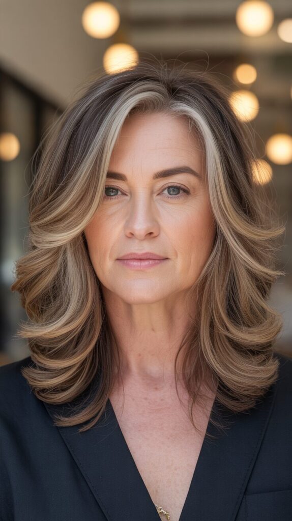 2. Long Layers with Face-Framing Angles for Women Over 50 with Round Faces