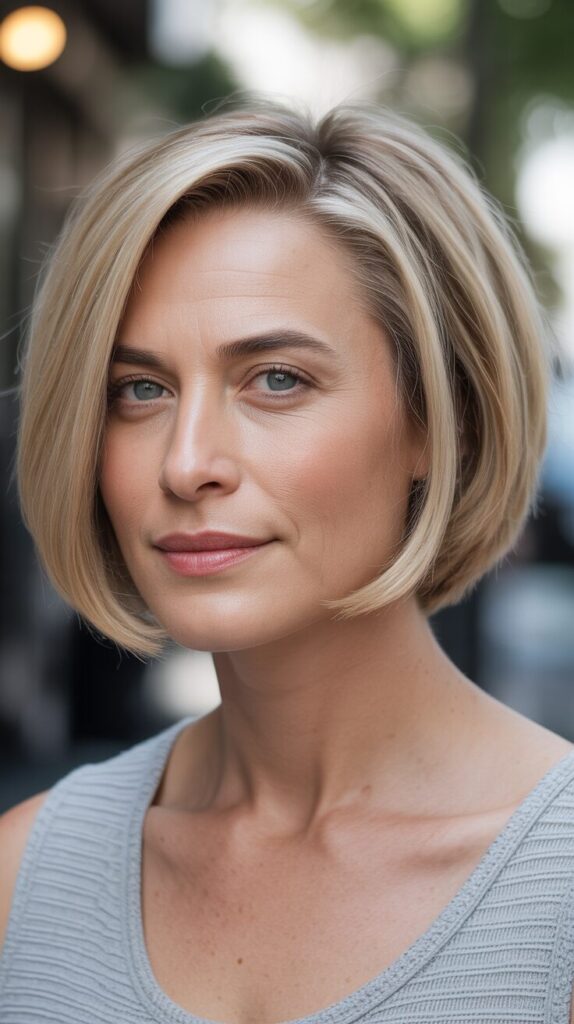 5. Angled Bob with Volume at the Crown for Women Over 50 with Round Faces