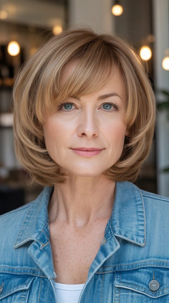 8. Side-Swept Bangs with Layered Bob for Women Over 50 with Thin Hair
