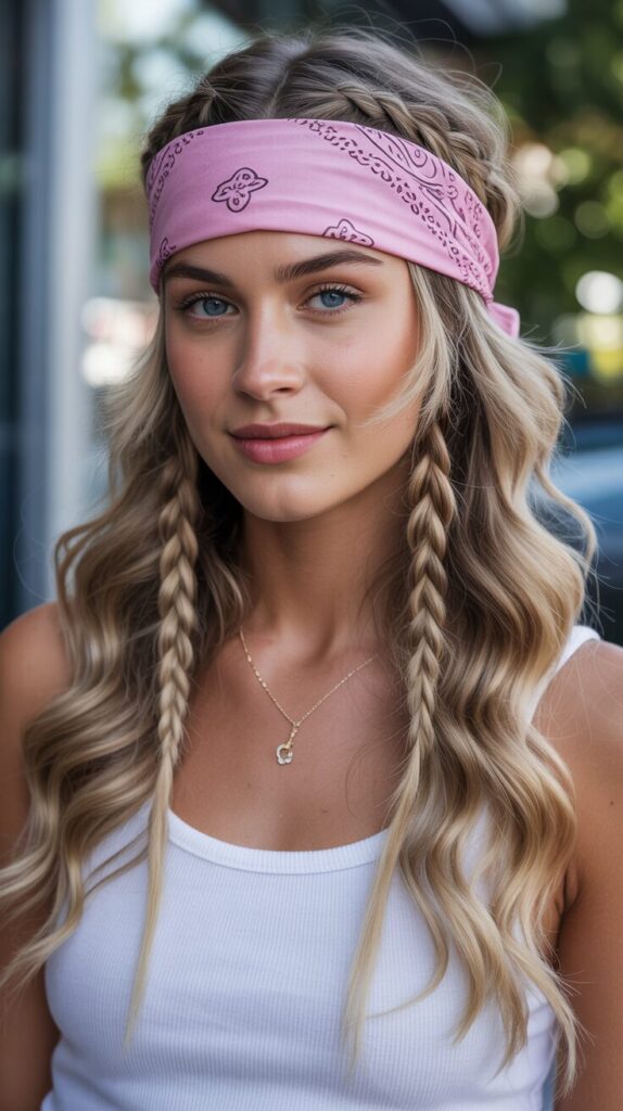 The baby braids styled with a bandana will give your Wavy Blonde Hair a playful and carefree feel. This playful combination is perfect for creating a stylish and carefree vibe with your Wavy Blonde Hair.