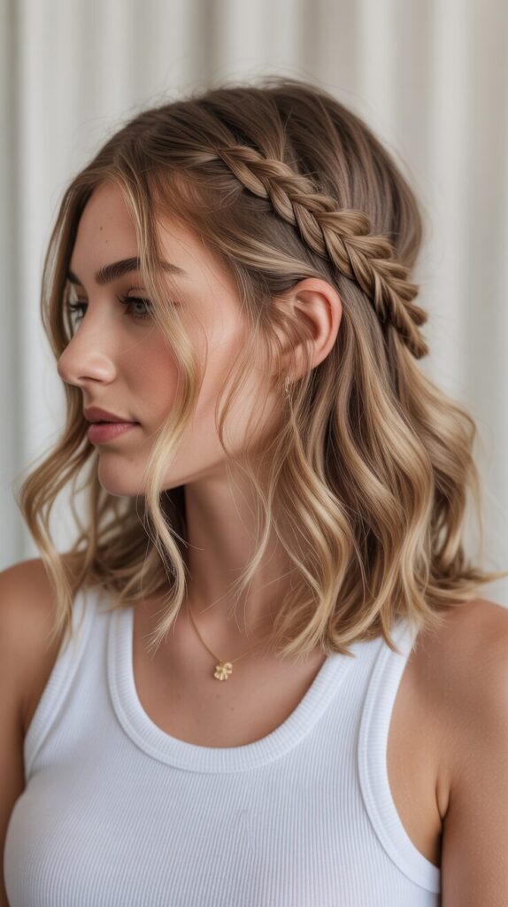 We are loving the effortless style of Medium Wavy Bronde Hair With Baby Braids. With its relaxed yet stylish vibe, this look is ideal for those who are looking for a perfect combination of sophistication and laid-back vibes.