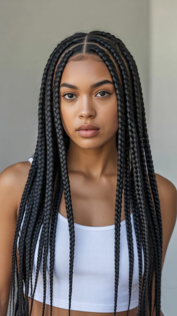 It’s time to make a bold statement with Long Black Thick Baby Braids. They’re a striking choice that will make your hair look voluminous and bring out the best in it.