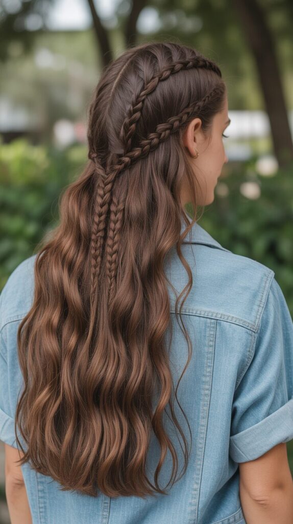 Discover the world of Long Brown Wavy Hair With Baby Braids, a style that combines the elegance of waves with the charming charm of tiny braids to create a look that you won’t soon forget.