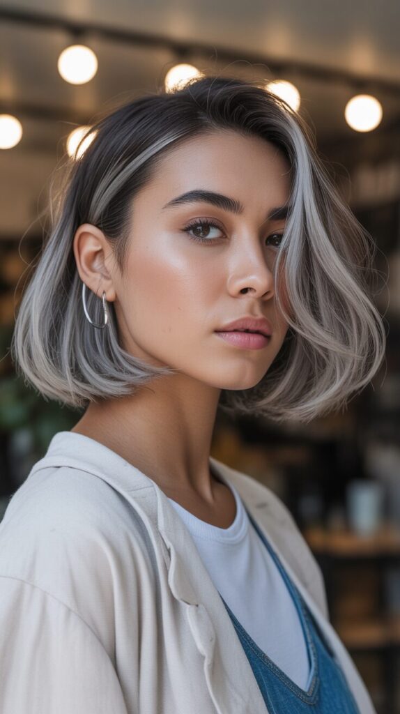 Hopefully, as we conclude our series on “Hairstyles With Silver Highlights,” these silver-accented looks have given you some ideas. These stylish silver-blonde highlights or bold silver balayage styles are a great way to express your individuality, whether you are into sleek silver-blonde highlights or bold silver balayage.