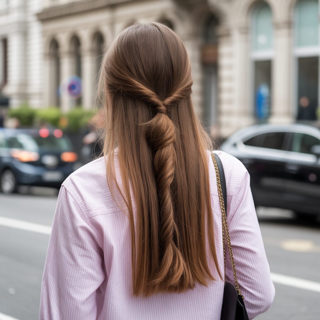 An effortlessly stylish half-up half-down hairstyle for long hair is an ideal way to strike a balance between a casual and chic look, providing versatility as well as an effortless appearance.
