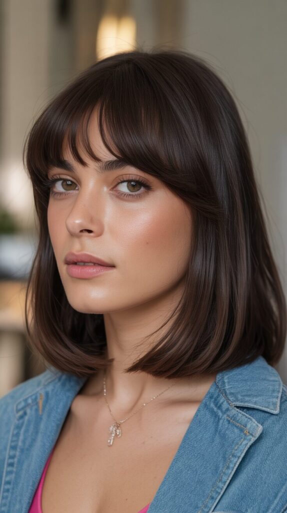 14. Dark Brown Wolf Cut With Curtain Bangs