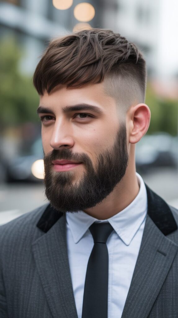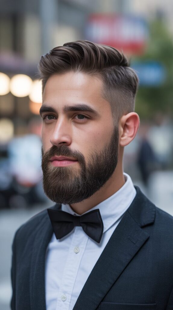 Classy Mod with Beard combines neat hair with a smooth beard for a sharp, grown-up look. Top is clean, sides are tidy, and facial hair is balanced. Look smart and cool with this style.
