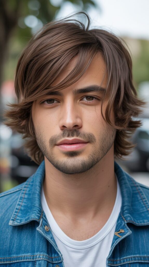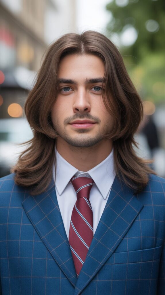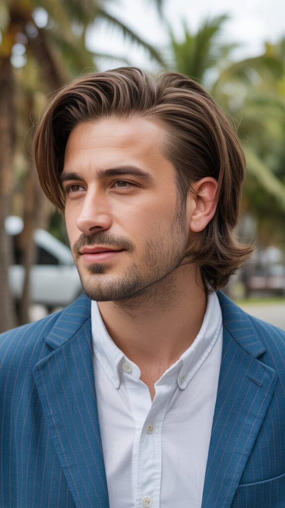 There is a stylish long mod with long hair that falls around your face nicely. Wearing it every day feels smooth, old-school, and very easy. If you’re looking for a style that’s neat but casual, this is the one for you.