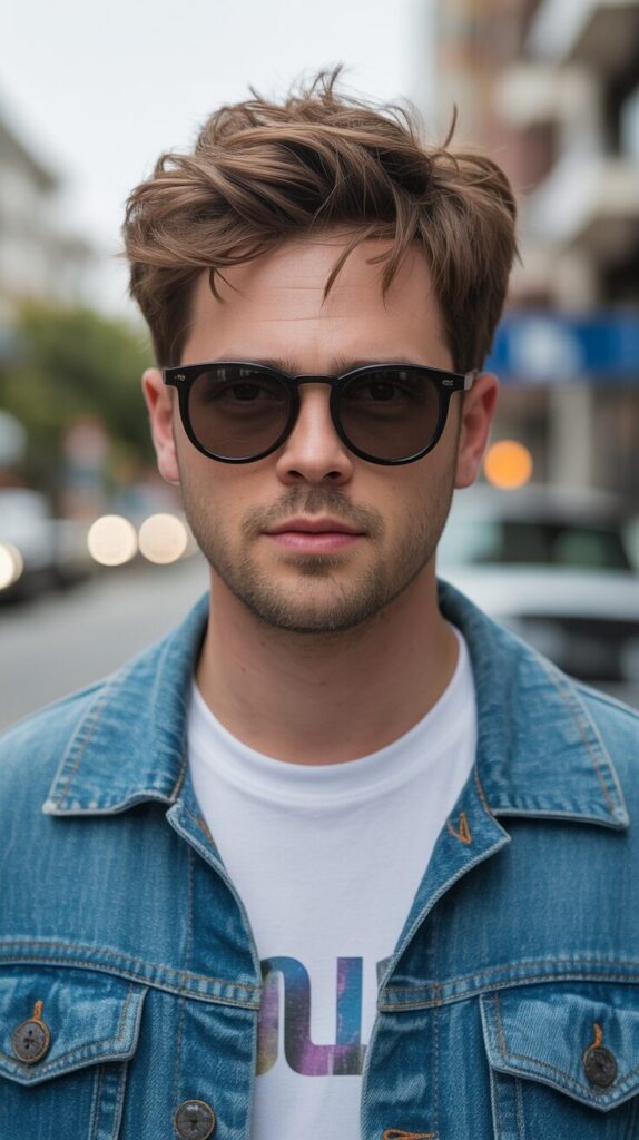 Hair looks a little messy, like you just rubbed your fingers through it. It’s perfect for people who want to look stylish without overdoing it.