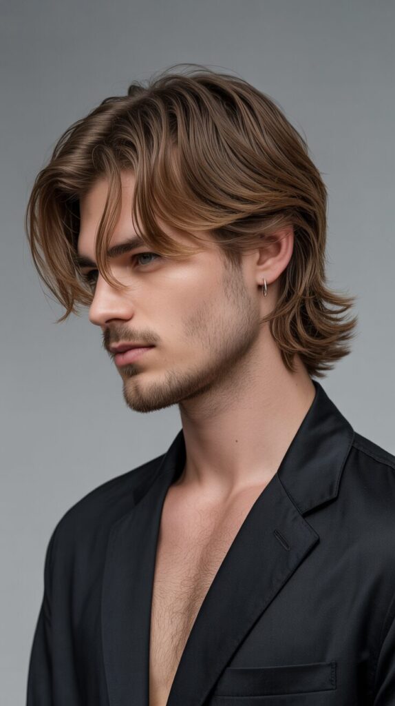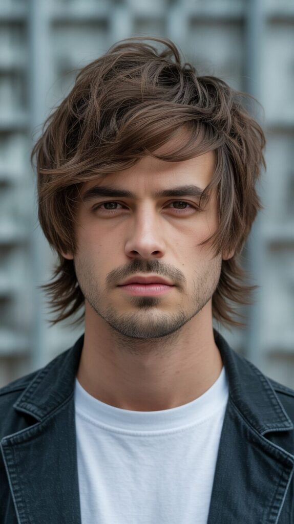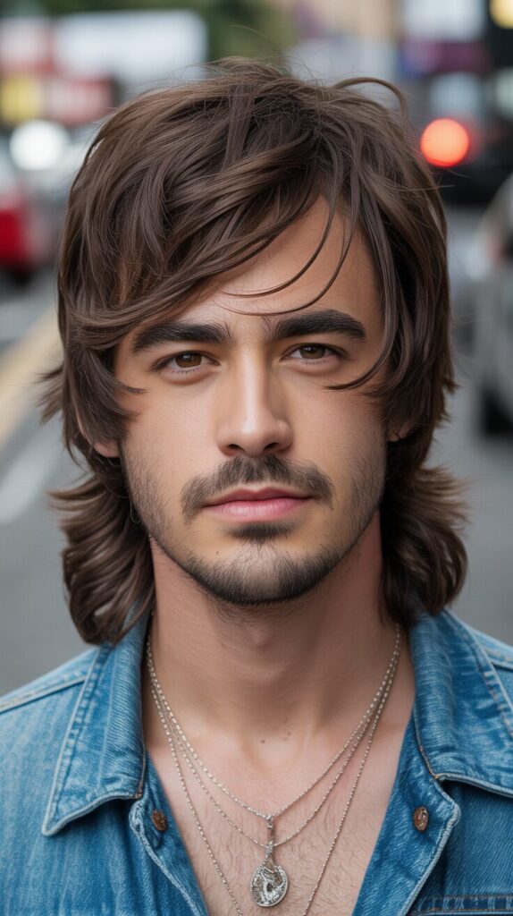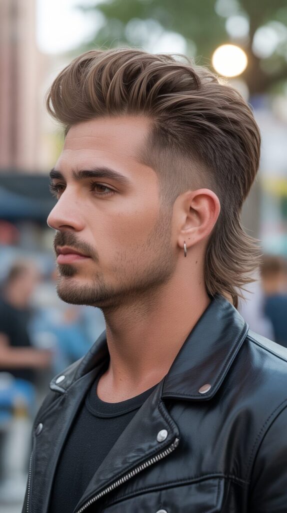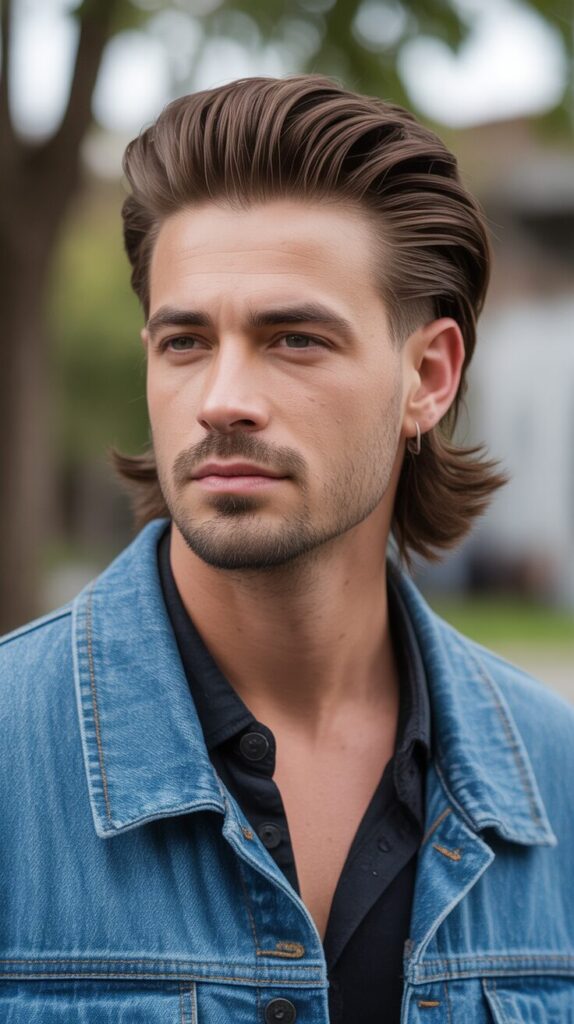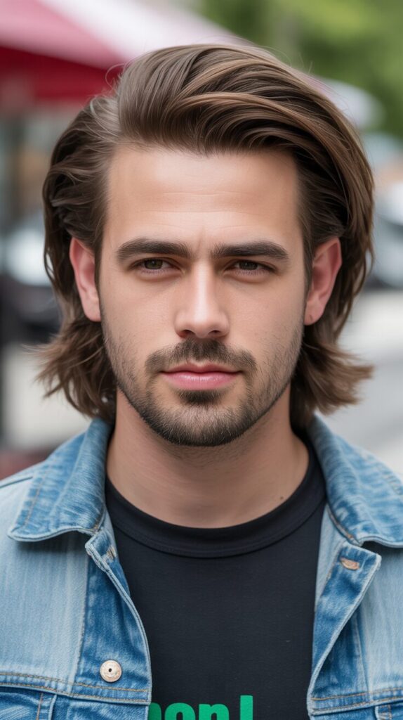 Combining a full beard with a sharp mullet, this style gives a strong, masculine appearance. Clean lines or fades around the ears balance the look.