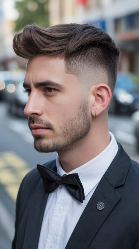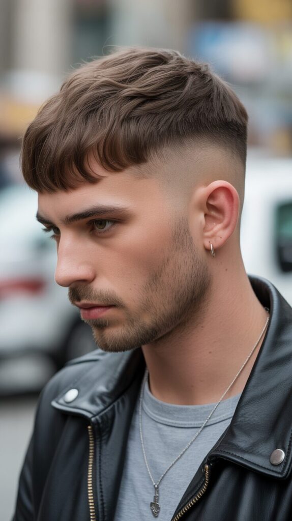 For a balanced, trendy style, a sharp fade with added bangs or fringe in the front offers edge and softness.