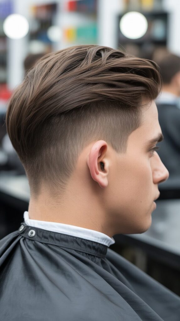 The back of this style keeps the classic length, while the sides transition to a shorter length, giving it a sharp, modern appearance.