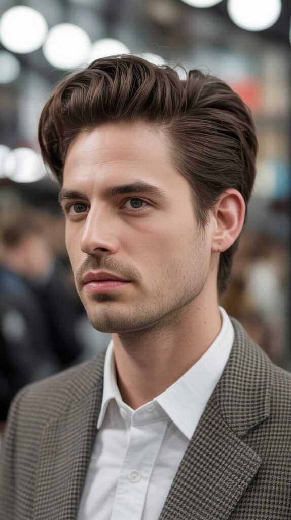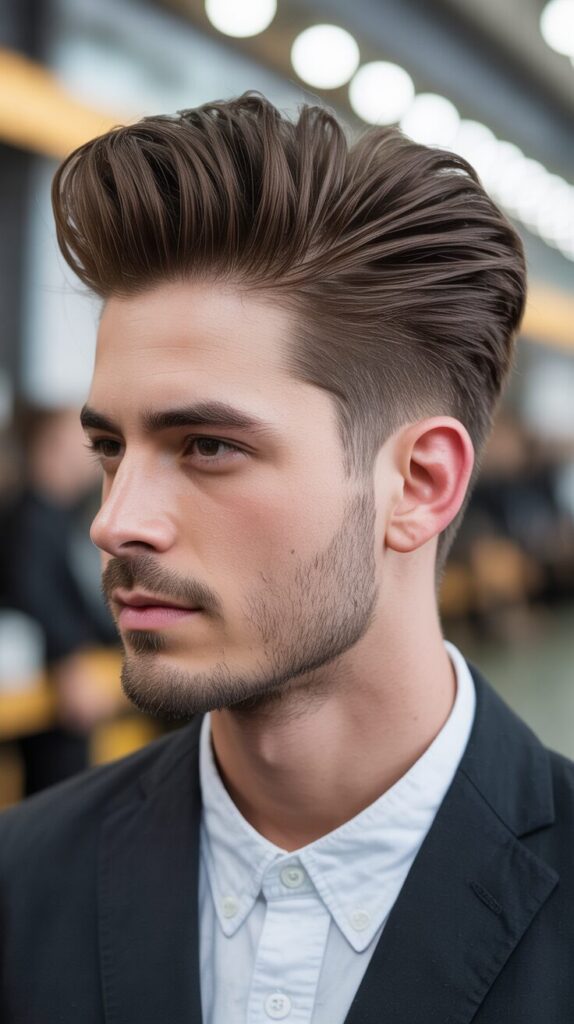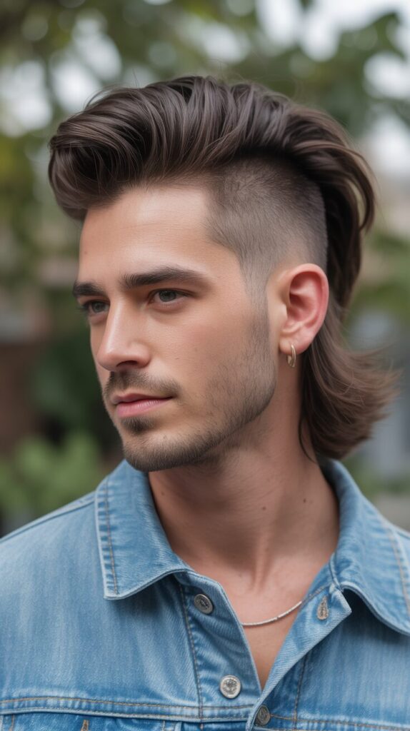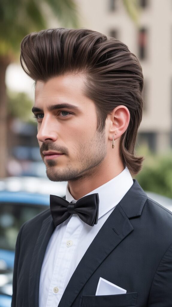 Mullet pompadours combine the high-volume elegance of a pompadour at the front with the relaxed length of a mullet at the back, creating a stylish mix of retro and modern.