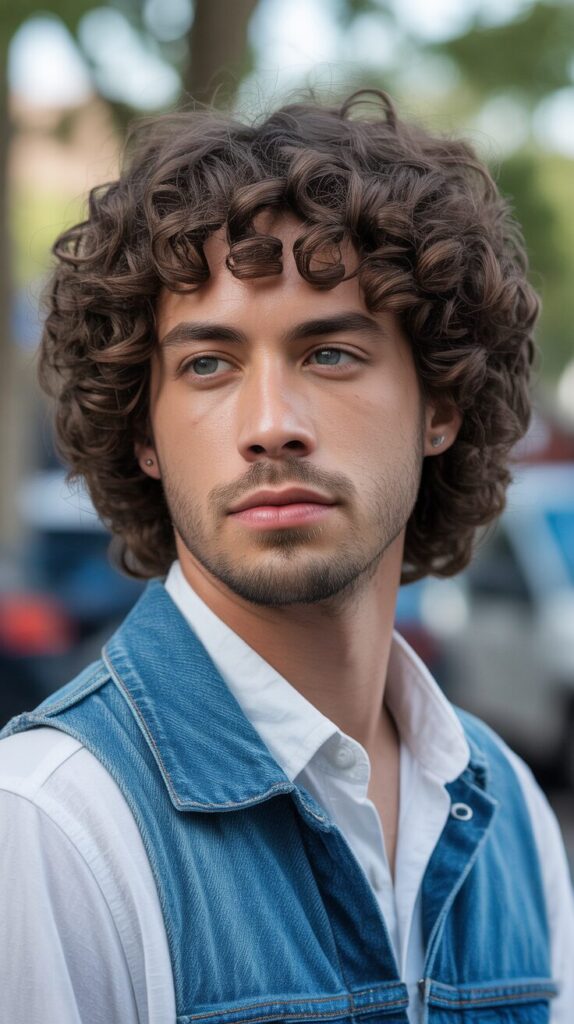 The Curly Mullet is perfect for curls that are naturally curly. Curly mullets celebrate texture with volume on top, tight or loose curls at the back, and short sides.