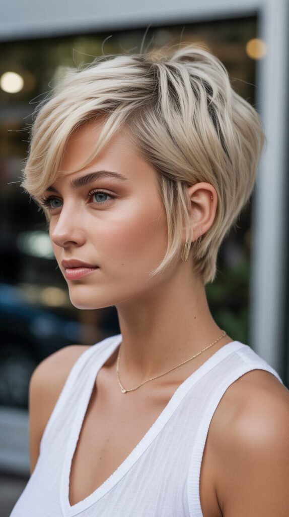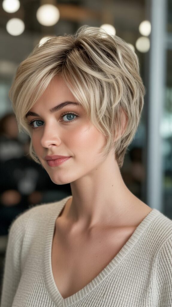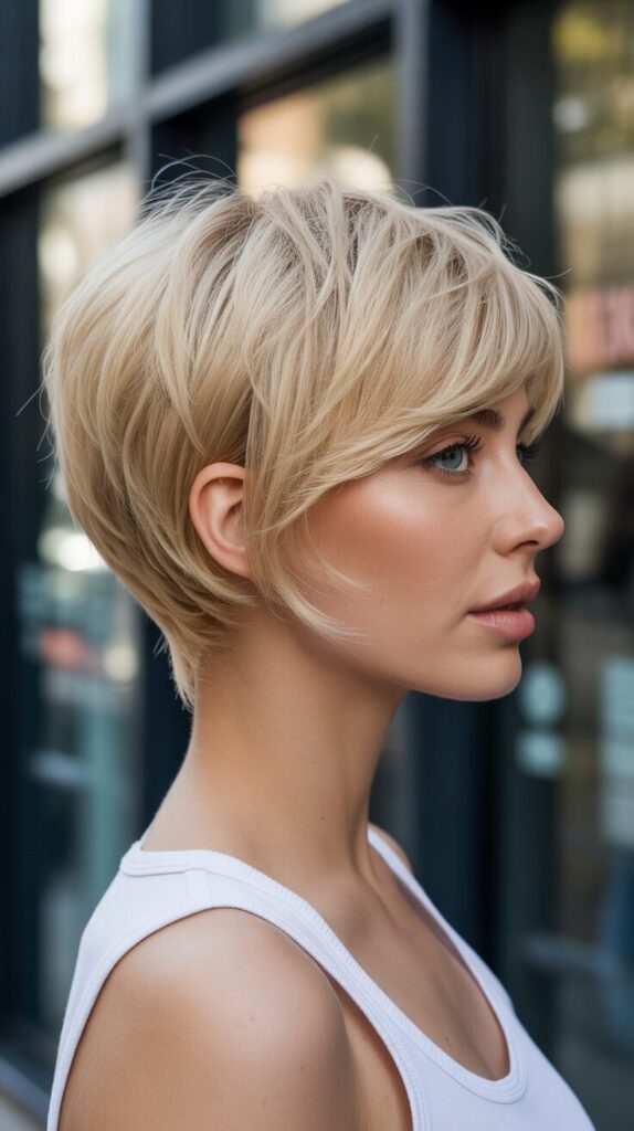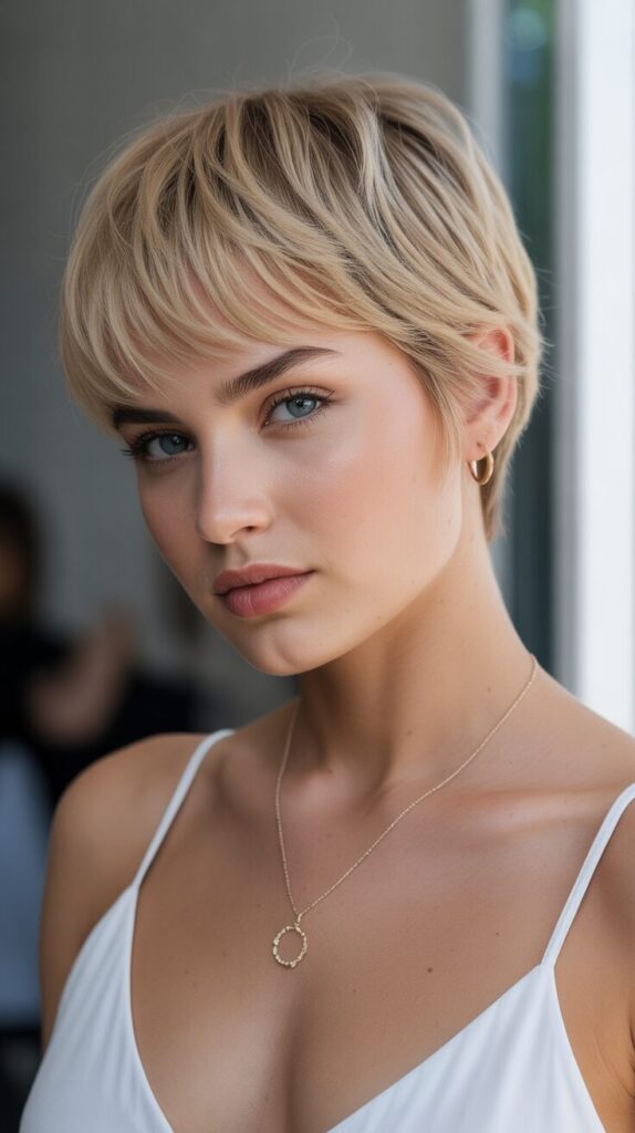 A Pixie Bob With Blonde Bangs For Fine Hair