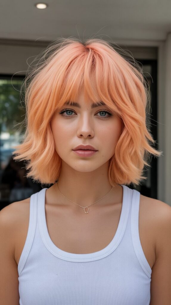 The Shaggy Peach Blonde Lob With Curtain Bangs