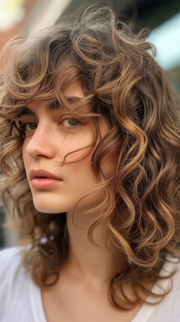 1. Curly Shaggy Wolf Cuts With Bangs Light Brown Wolf Cut With Messy Bangs