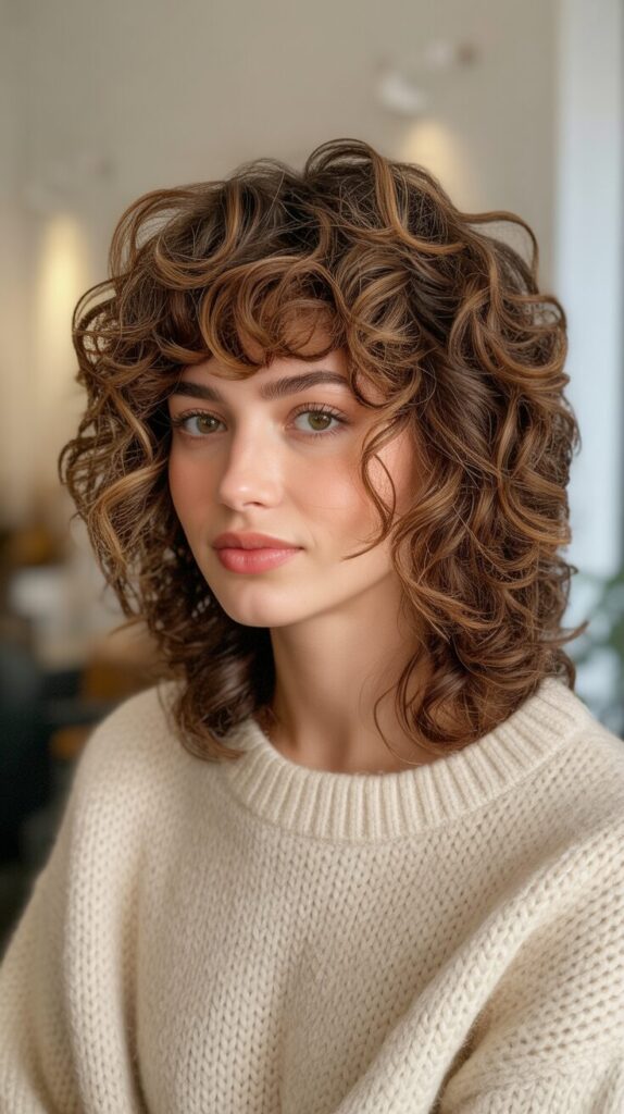 6. Curly Shag Wolf Cut With Short Curly Bangs