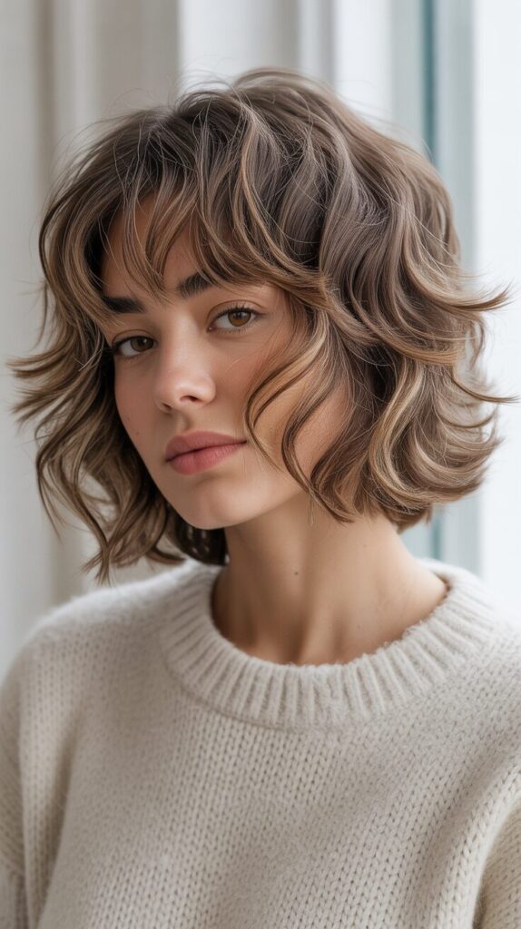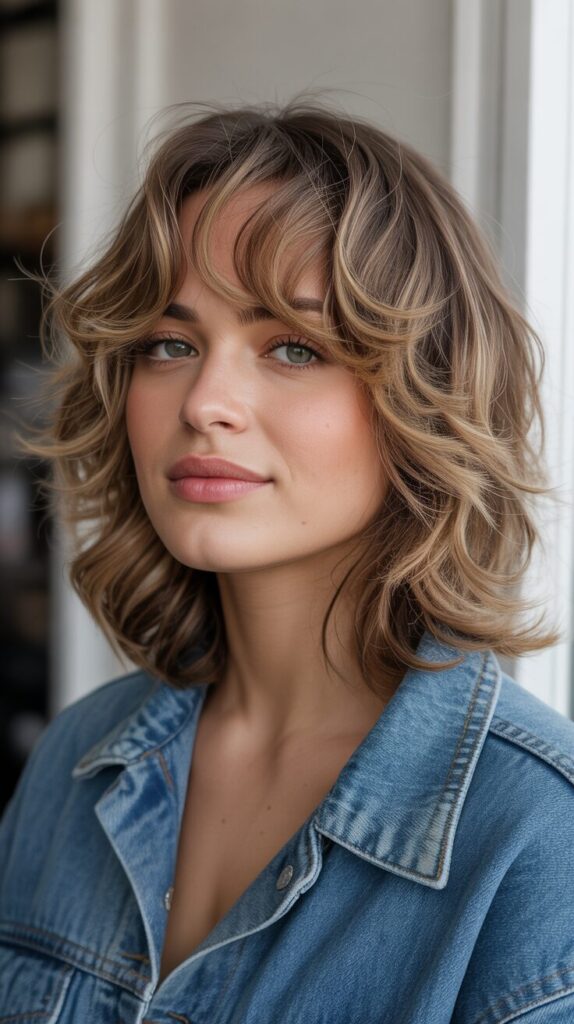 There is nothing better than looking at this curly shaggy wolf cut with messy bangs for light brown hair if you are looking for a dynamic and edgy hairstyle, but with an unkempt appearance.