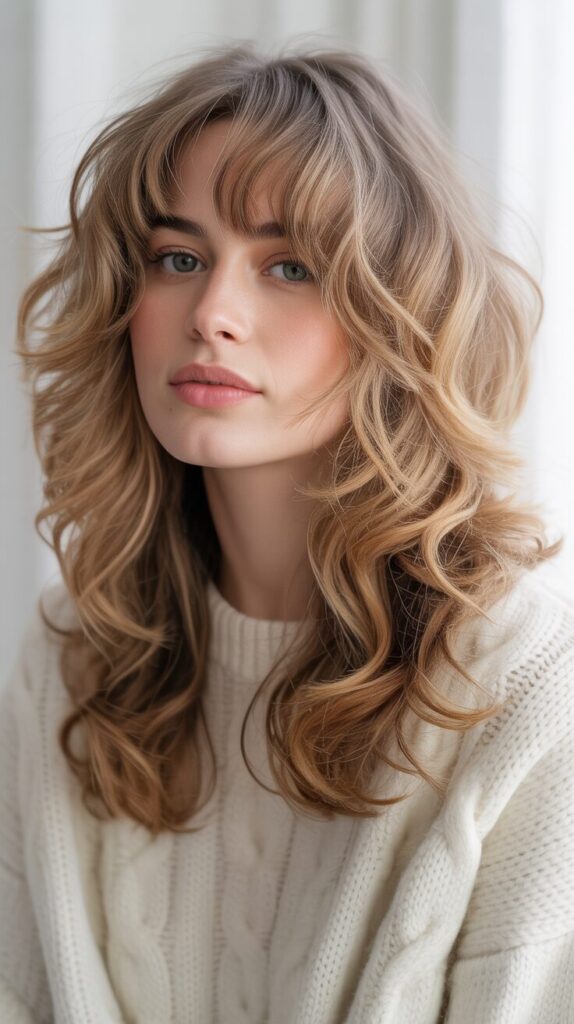 12. Long Wavy Shag Wolf Cut With Wispy Bangs