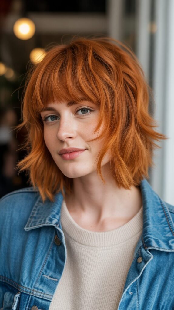 15. Ginger Shag Medium Wolf Cut With Short Choppy Bangs