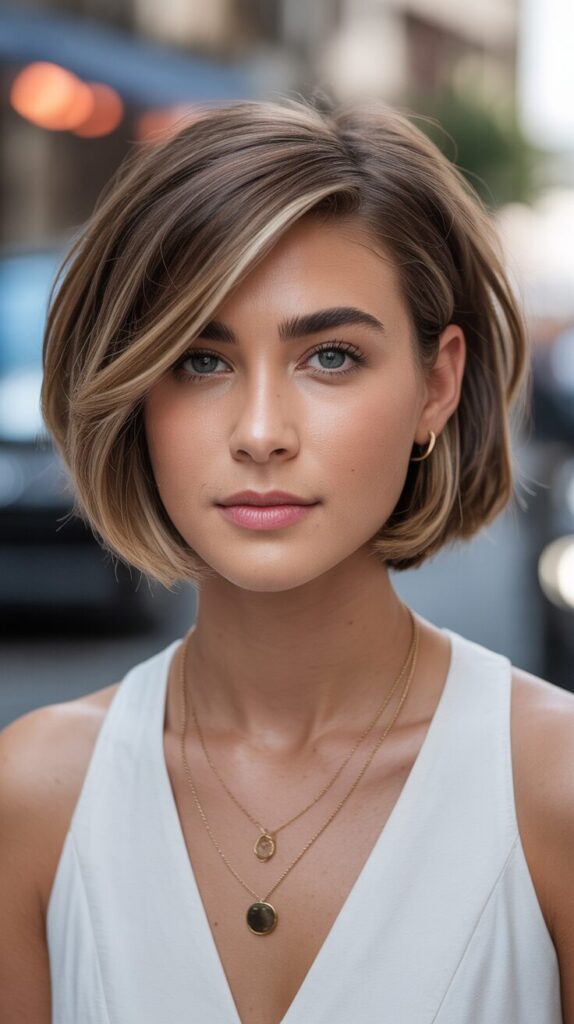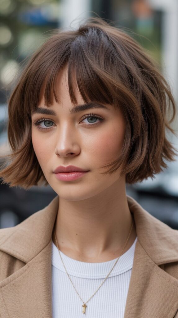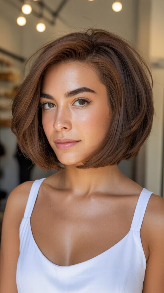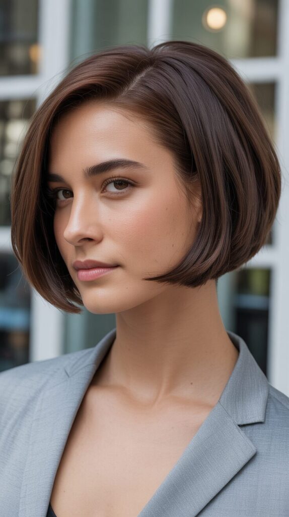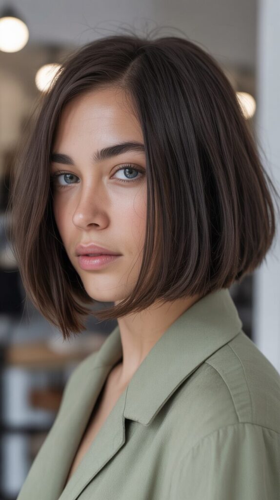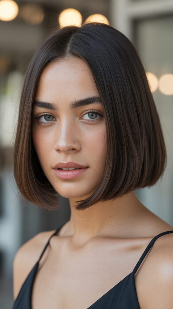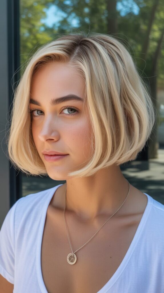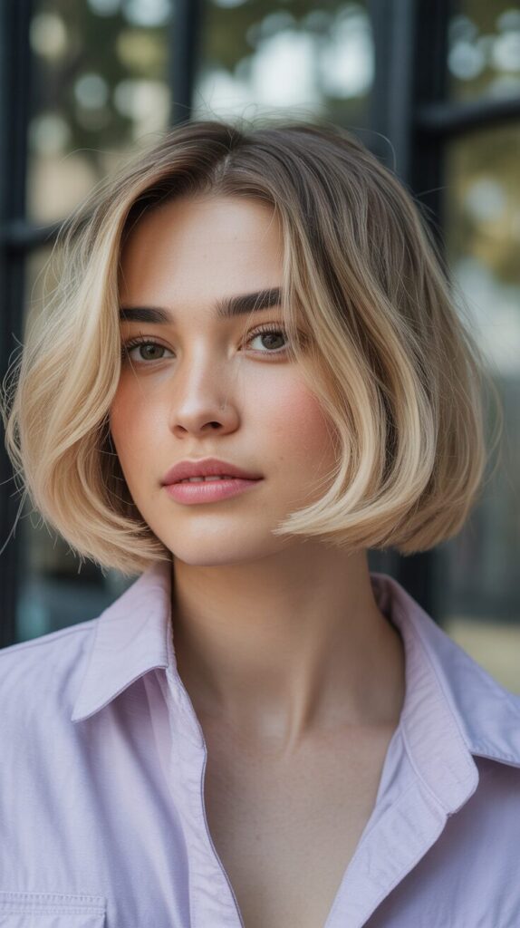 The blunt ends of fine hair make it feel thicker instantly, and the shape of the cut keeps things feeling fresh and full. There is no need to add volumizers – your hair will look more structured naturally. It is an excellent choice for anyone who wants something clean and easy without sacrificing fullness.